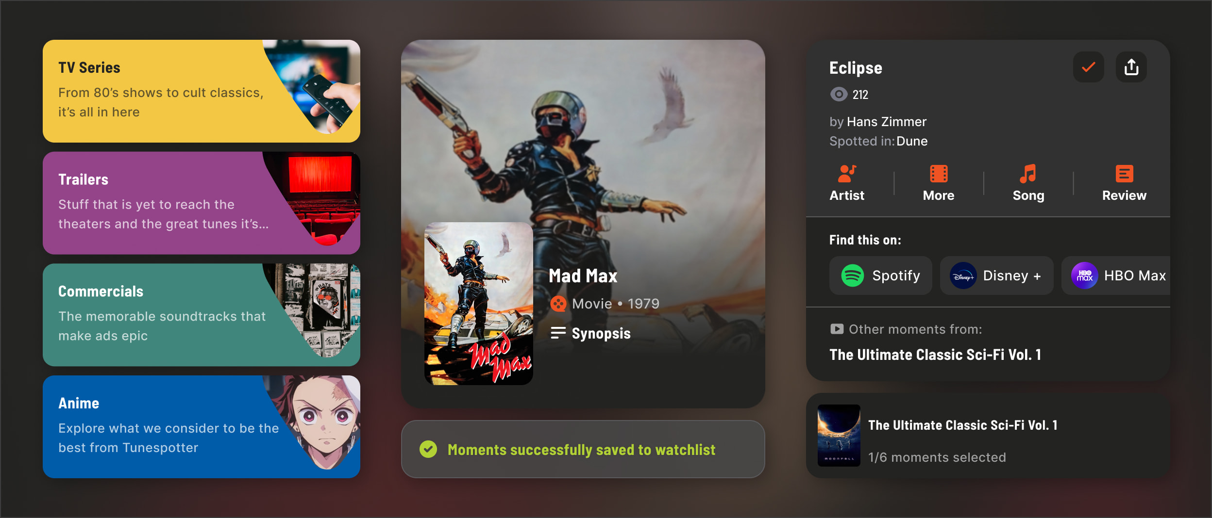 Providing a centralized platform dedicated to curating and showcasing extraordinary sync moments, Tunespotter not only simplifies the discovery process but also empowers users to actively engage in saving and sharing their favourite sync moments with a like-minded community.