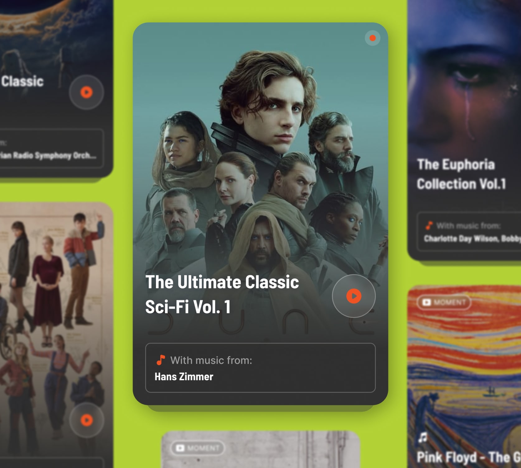 Themed collections are dedicated to curating and showcasing the most extraordinary movie music moments. The app's curated approach ensures that users can effortlessly explore and enjoy a wide array of musical choices, enhancing their overall content consumption experience. Constantly updated to follow the most recent trends in music, movies, and shows.